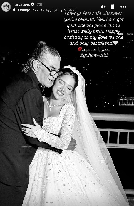 وكتب رنا رئيس عبر خاصية الاستوري عبر حسابها الرسمي على موقع التواصل الاجتماعي لتبادل الصور والفيديوهات الانستجرام: "دائمًا أشعر بالأمان عندما تكون بالقرب مني، لديك مكانة خاصة في قلبي عيد ميلاد سعيد لأفضل صديق وأعز شخص في حياتي، الوحيد والأبدي، بحبك يا صاحبي".
