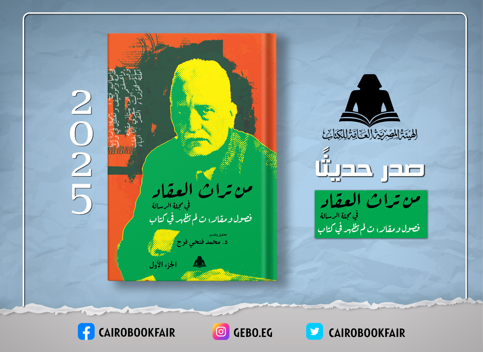 أصدرت وزارة الثقافة، ممثلة في الهيئة المصرية العامة للكتاب برئاسة الدكتور أحمد بهي الدين، كتابًا جديدًا بعنوان "من تراث العقاد في مجلة الرسالة"، من تحقيق وتقديم الدكتور محمد فتحي فرج، وجاء الإصدار في جزأين، موثقًا عددًا من فصول ومقالات المفكر والأديب الكبير عباس محمود العقاد التي لم يسبق لها أن نُشرت في كتاب.