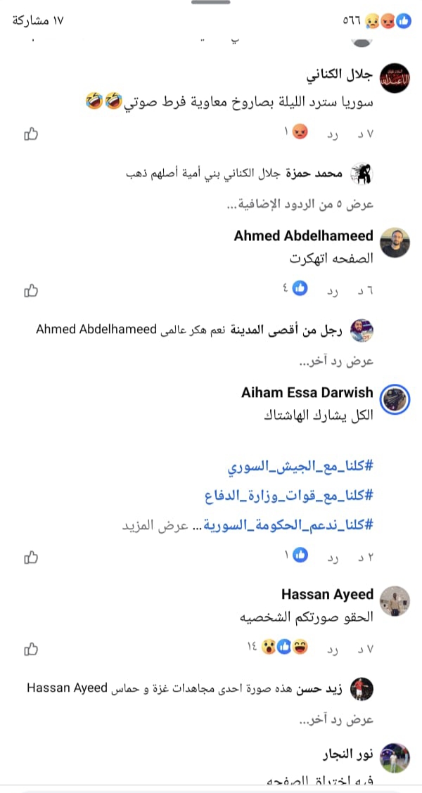 ولم يقتصر الأمر على ذلك، بل استغل البعض الفوضى للترويج لأجندات سياسية، حيث قام أحد المستخدمين بنشر هاشتاجات مؤيدة للحكومة السورية مثل "#كلنا_مع_الجيش_السوري"، في محاولة لاستغلال الوصول الواسع للصفحة المخترقة.