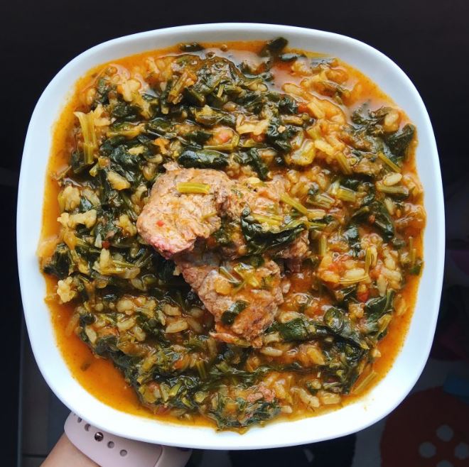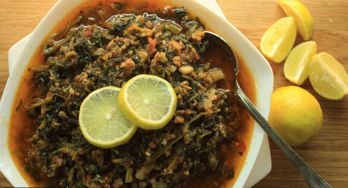 أخيرًا، تُضاف السبانخ المفرومة وتُطهى لمدة 10–15 دقيقة على نار متوسطة حتى تنضج تمامًا.