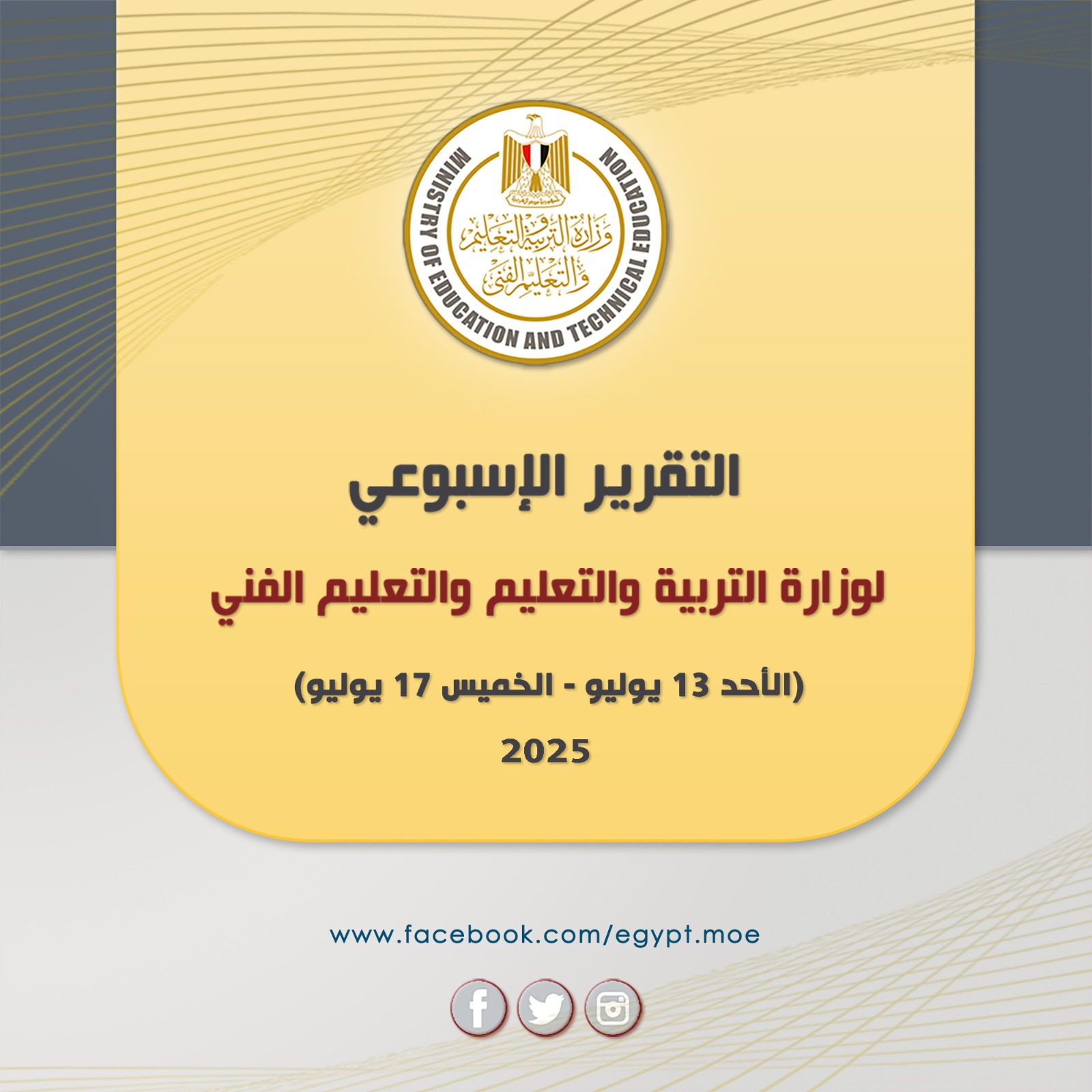 التقرير الأسبوعي لوزارة التربية والتعليم والتعليم الفني من ١٣ يوليو- ١٧ يوليو ٢٠٢٥