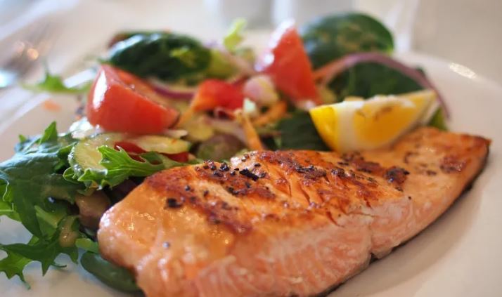قوم بتتبيل شرائح السلمون بالملح والفلفل وعصير الليمون، ويتم شوي السلمون على الشواية أو في الفرن حتى ينضج بشكل تام.