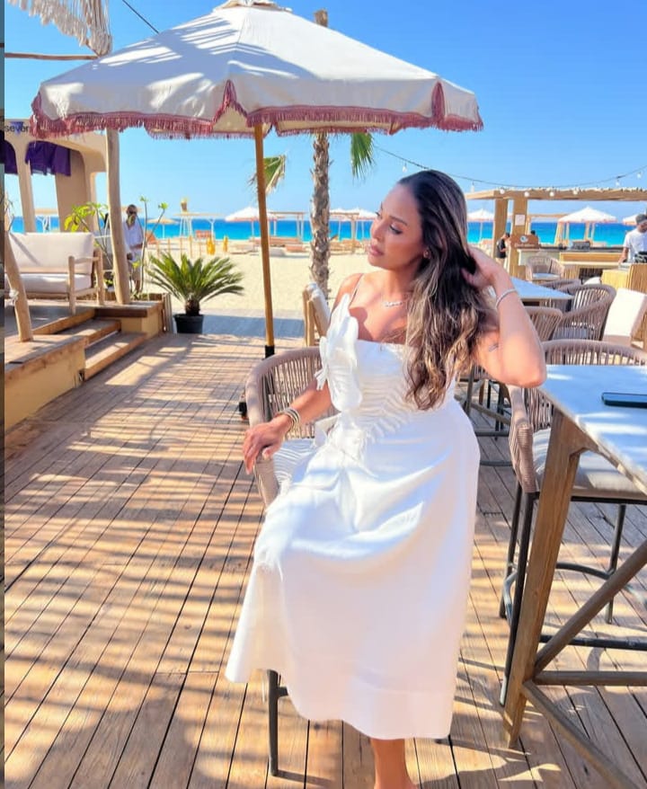 إطلالة تخطف الأنظار.. داليا البحيري تتألق بالأبيض على شاطئ البحر