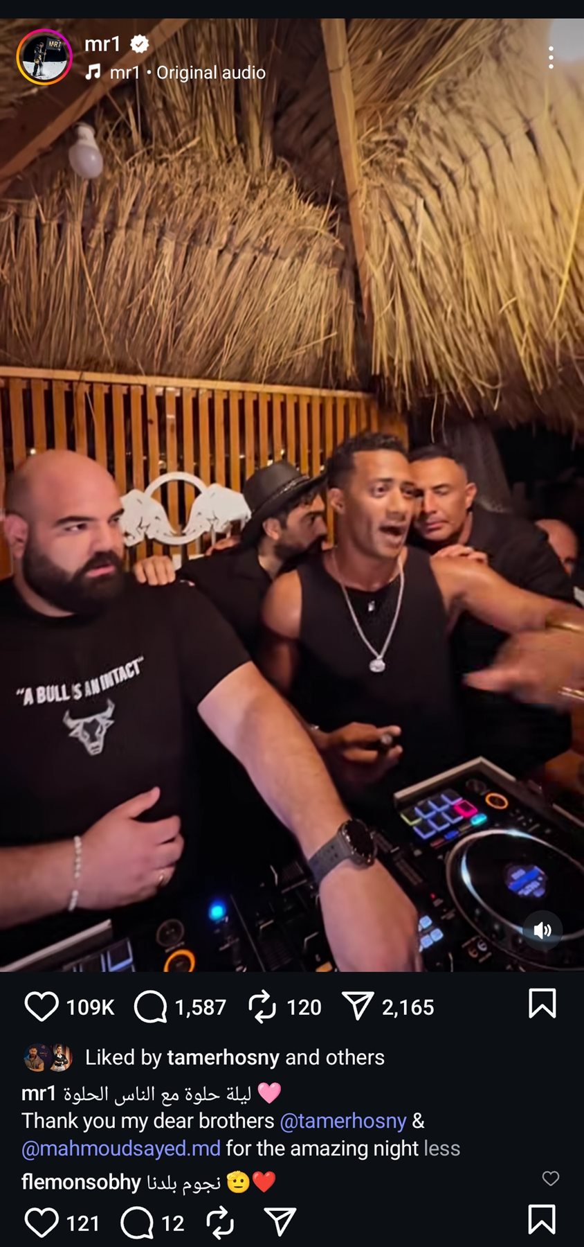 وعلق الفنان محمد رمضان، "ليلة حلوة مع الناس الحلوة"، شكرا لاخويا العزيز تامر حسني ومحمود سيد على الليلة المذهلة"، وذلك عبر حسابه الرسمي على موقع التواصل الاجتماعي لتبادل الصور والفيديوهات الانستجرام.