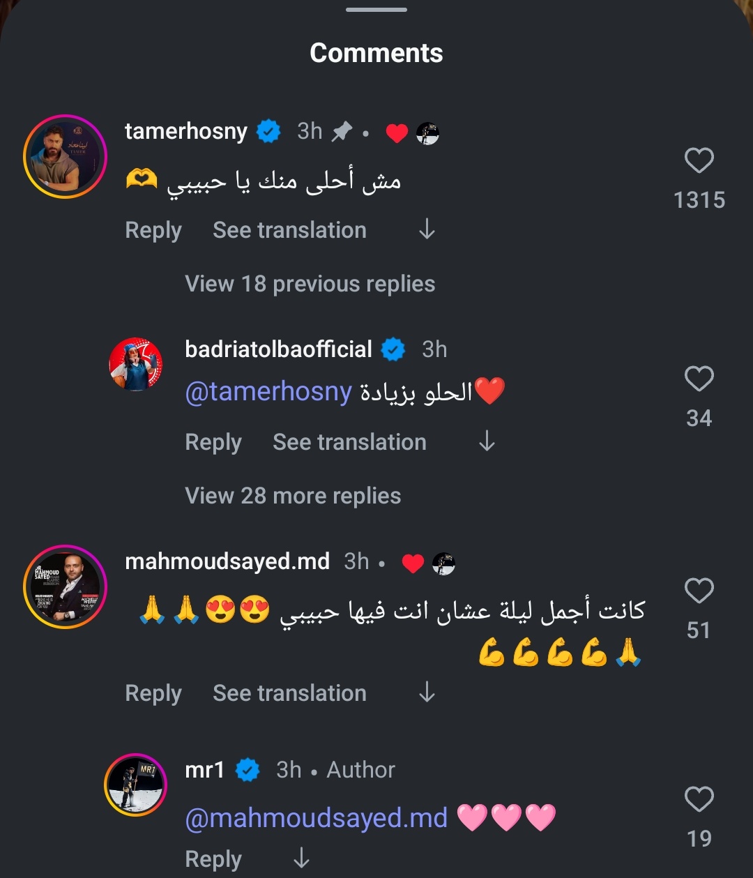 ورد عليه الفنان تامر حسني في التعليقات: "مش احلى منك يا حبيبي".