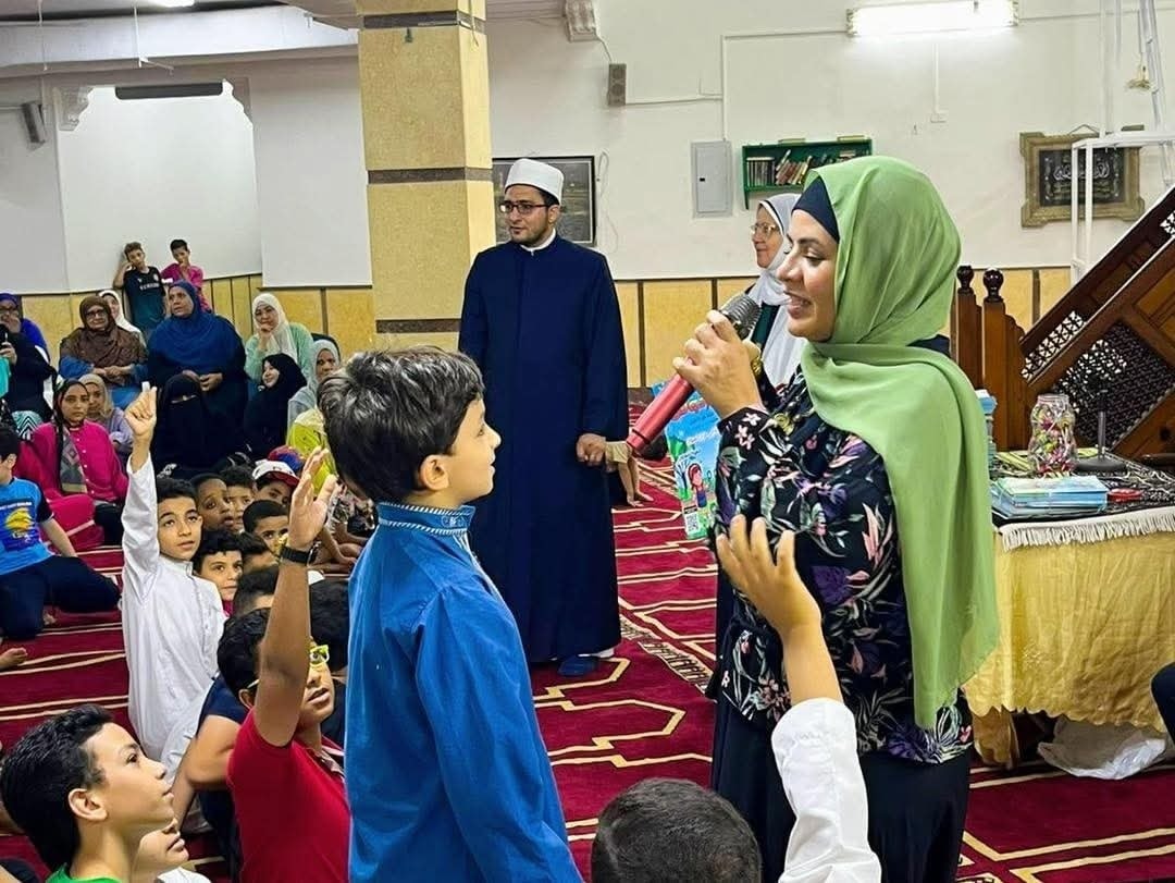وقدّمت للأطفال فقرة تفاعلية طرحت خلالها مجموعة من الأسئلة الثقافية حول مجلة الفردوس وما تحتويه من موضوعات تُخاطب وعي الطفل وتغذّي وجدانه، كما ناقشت معهم دور المسجد في حياتهم، وأهمية مشاركتهم في أنشطته التربوية، مؤكدة أن الطفل إذا أحب المسجد أحب الخير والحق والوطن.