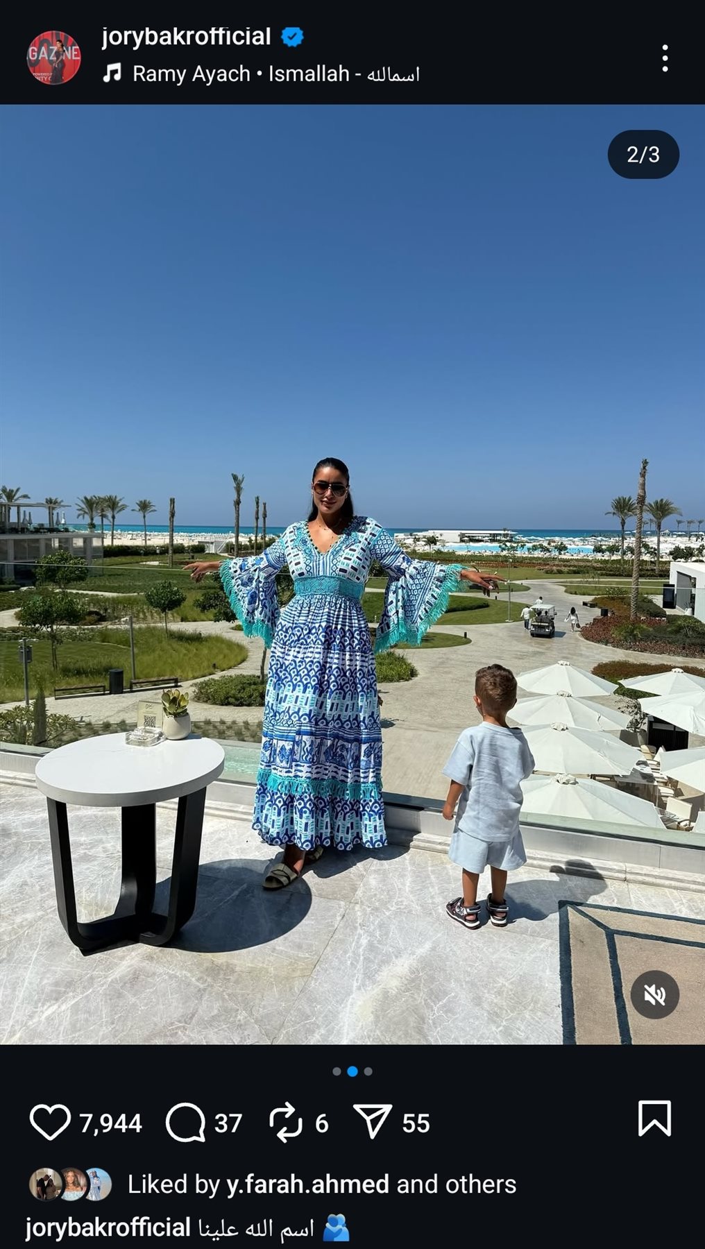 شاركت الفنانة حوري بكر جمهورها إطلالتها برفقة نجلها تميم، أثناء قضائها إجازتها الصيفية وذلك عبر حسابها على موقع التواصل الاجتماعي لتبادل الصور والفيديوهات الانستجرام.