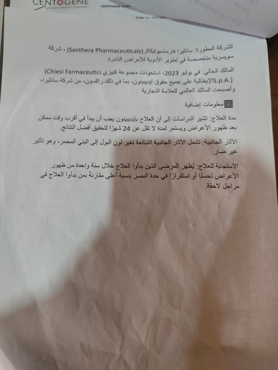 طالبنا العلاج قال إنه مش هينفع العلاج الاصلي يجي لانه هيبقي تهريب ودا غير قانوني احنا عندنا الشركه المصنعه للماده البديله هنصرفه ليه احمدي ربنا انك اول واحده هيتصرف ليكي قولته انا بجيب البديل المستورد من برا مصر بقالي سنه وبياخده. قالي احمدي ربنا