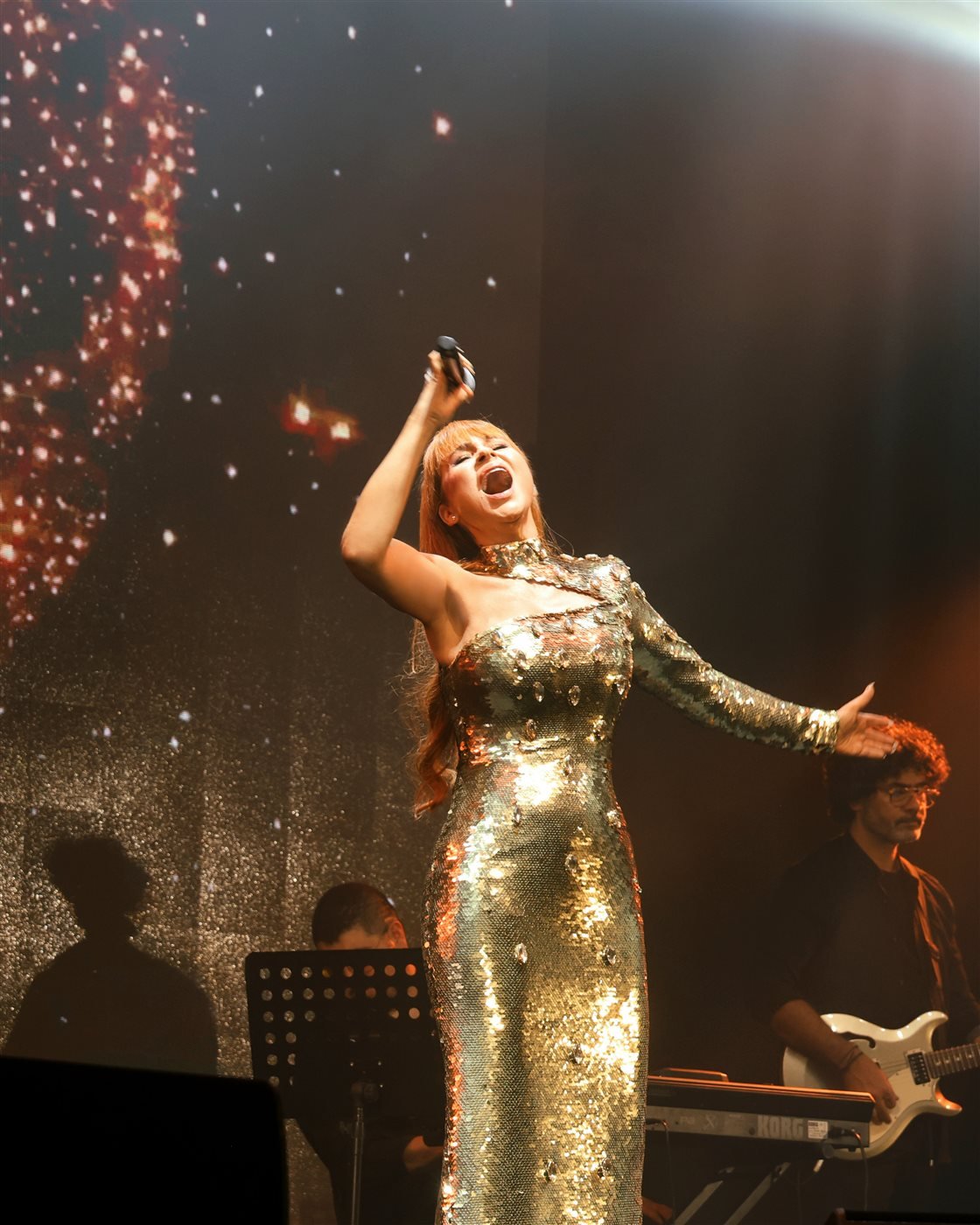 واختتمت الحفل بدعوة الجمهور للوقوف أمام المسرح، حيث أدت مجموعة من أغنياتها الحماسية وسط موجة من الرقص والغناء، تاركة خلفها أمسية لا تُنسى ومليئة بالذكريات الموسيقية الجميلة.