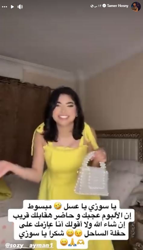 شارك النجم تامر حسني فيديو للبلوجر سوزي الاردنية عبر خاصية الاستوري على صفحته الرسمية "فيس بوك" موجهة من خلاله رسالة للفنان مشيدة بالالبوم الذي طرحه منذ أيام ولاقى تفاعلا كبيرا بين الجمهور .
