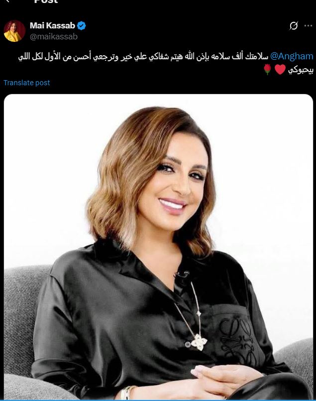 وكتبت مي عبر صفحتها الرسمية "إكس" تويتر سابقآ" سلامتك ألف سلامه بإذن الله هيتم شفاكي علي خير وترجعي احسن من الأول لكل اللي بيحبوكي ".