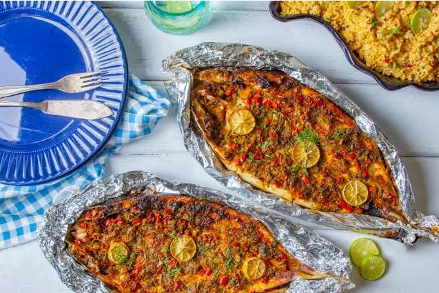 يُتبل السمك بالملح والفلفل الأسود والكمون وزيت الزيتون.