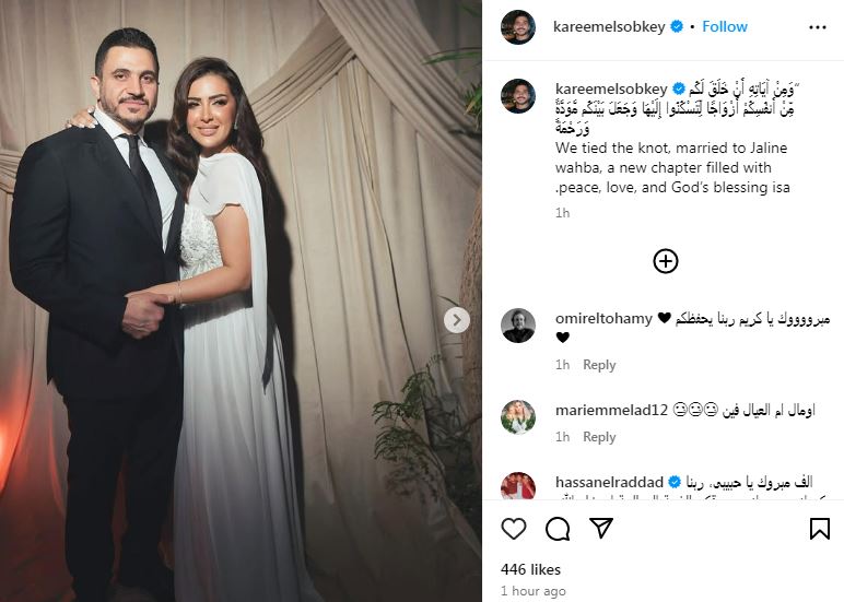 أعلن المخرج والمنتج الشاب كريم السبكي عن عقد قرانه من فتاة خارج الوسط الفني وشارك متابعية صور من خلال صفحته الرسمية على "إنستجرام" وعلق عليها " عقدنا قراننا على "جالين وهبة"، وبدأنا فصلاً جديداً مليئاً بالسلام والحب وبركات الله.