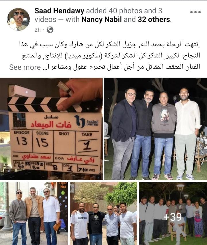 وجه المخرج سعد هنداوي الشكر لكل صناع وأبطال العمل في "مسلسل فات الميعاد"، وذلك عبر حسابه الرسمي على موقع التواصل الاجتماعي الفيسبوك.