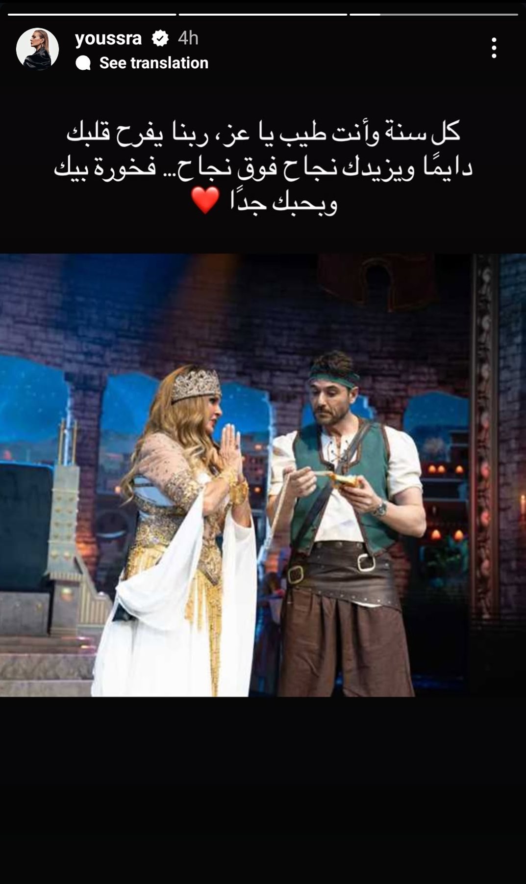 حرصت الفنانة يسرا على تهنئة الفنان أحمد عز بعيد ميلاده، وذلك عبر حسابها الرسمي على موقع التواصل الاجتماعي لتبادل الصور والفيديوهات الانستجرام.