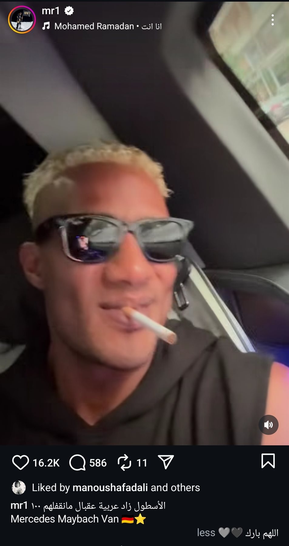 ونشر محمد رمضان مقطع فيديو عبر حسابه الرسمي بموقع التواصل الاجتماعي لتبادل الصور والفيديوهات الانستجرام، وكتب: "الأسطول زاد عربية عقبال مانقفلهم100، Mercedes Maybach Van، اللهم بارك".
