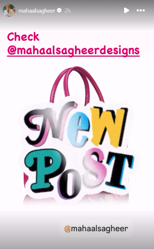 روجت الإعلامية مها الصغير عبر خاصية "الستوري" على حسابها الرسمي بموقع التواصل الإجتماعي لتبادل الصور والفيديوهات الإنستجرام عن أحدث تصميماتها في براند الشنط الخاص بها.
