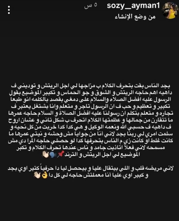 واضافت: "مستحيل أكون أقصد أي إساءة أو استهزاء واللي يعرفني يعرف أنا قد إيه بحترم ديني وبدعي إني أكون دايما عند حسن ظن ربنا والناس".