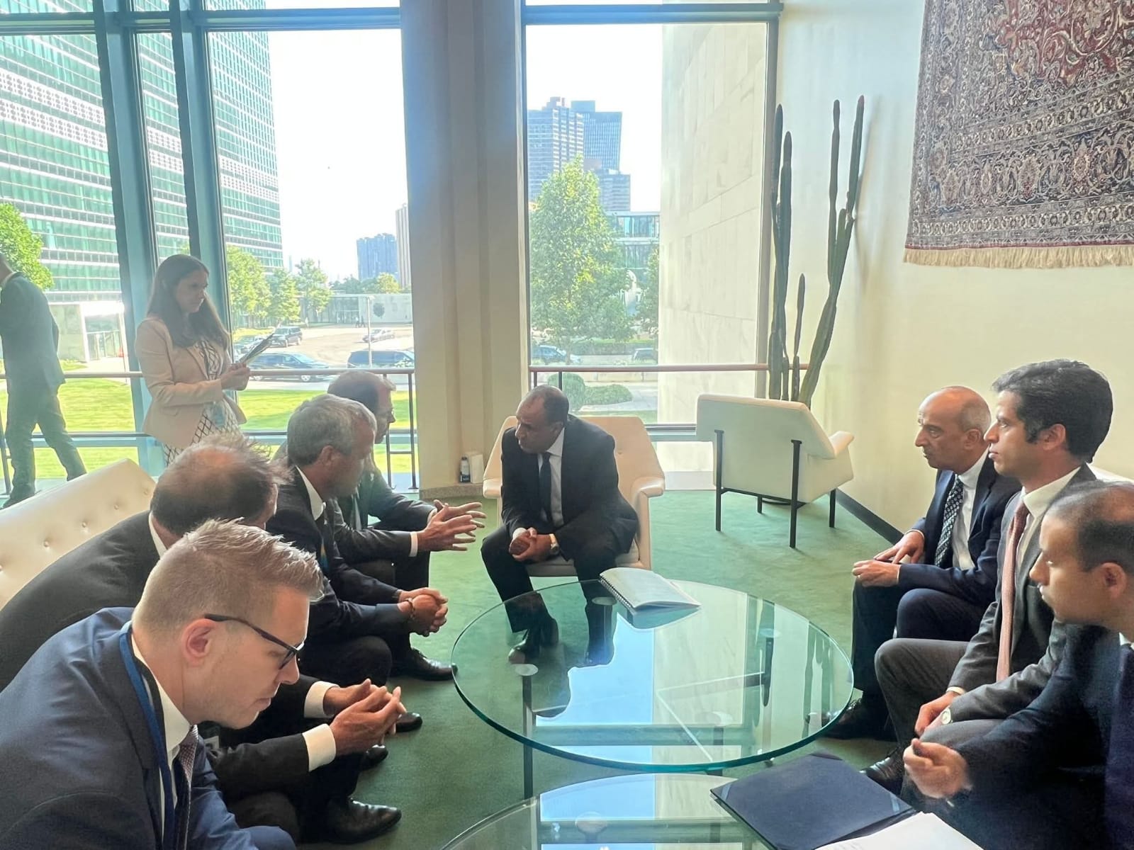 التقى د. بدر عبد العاطى وزير الخارجية والهجرة مع السيد "فلوريان هان"، وزير الدولة بوزارة الخارجية الألمانية على هامش أعمال المؤتمر الدولي رفيع المستوى للتسوية السلمية لقضية فلسطين وتنفيذ حل الدولتين، بمقر الأمم المتحدة في نيويورك.