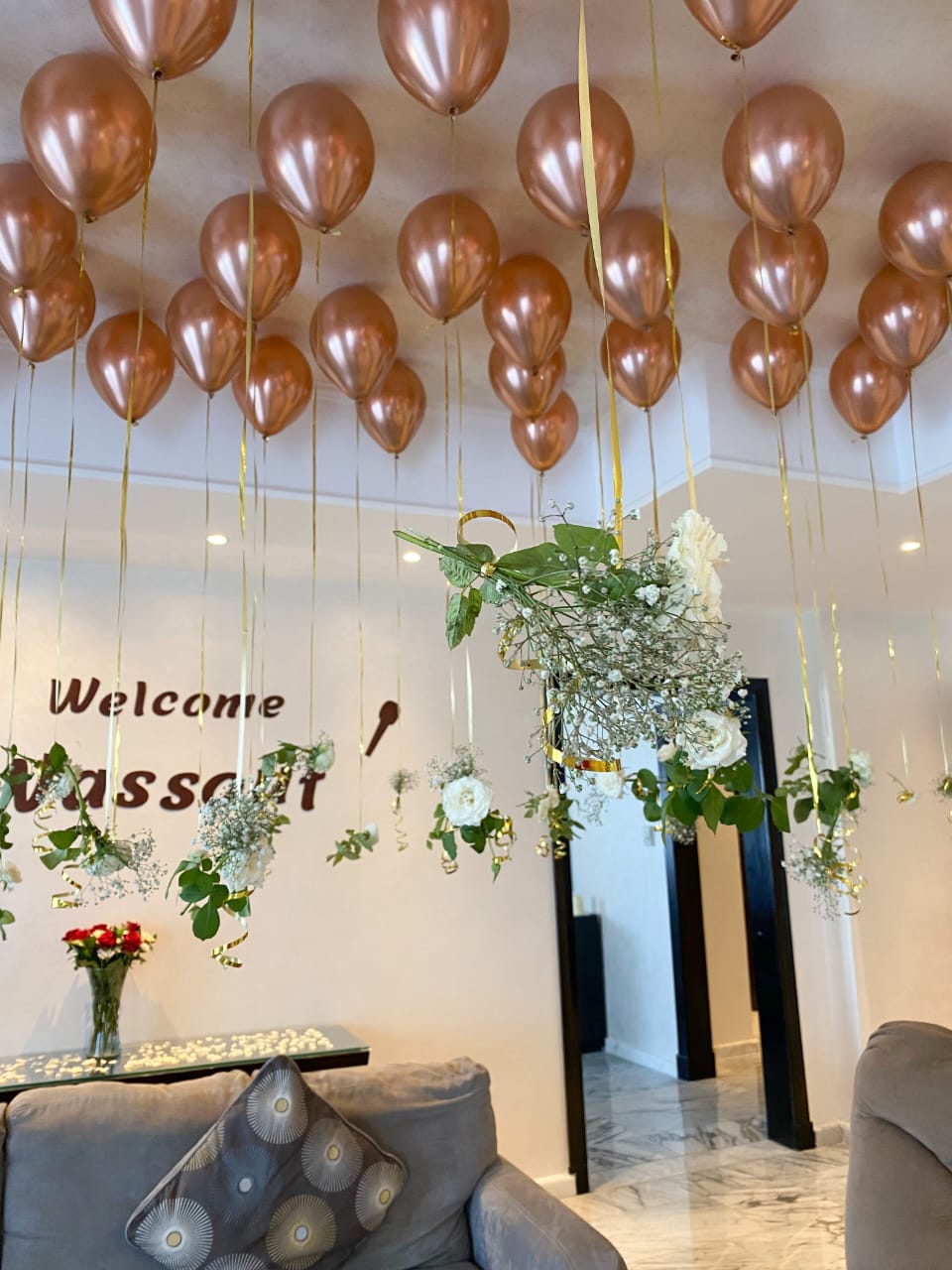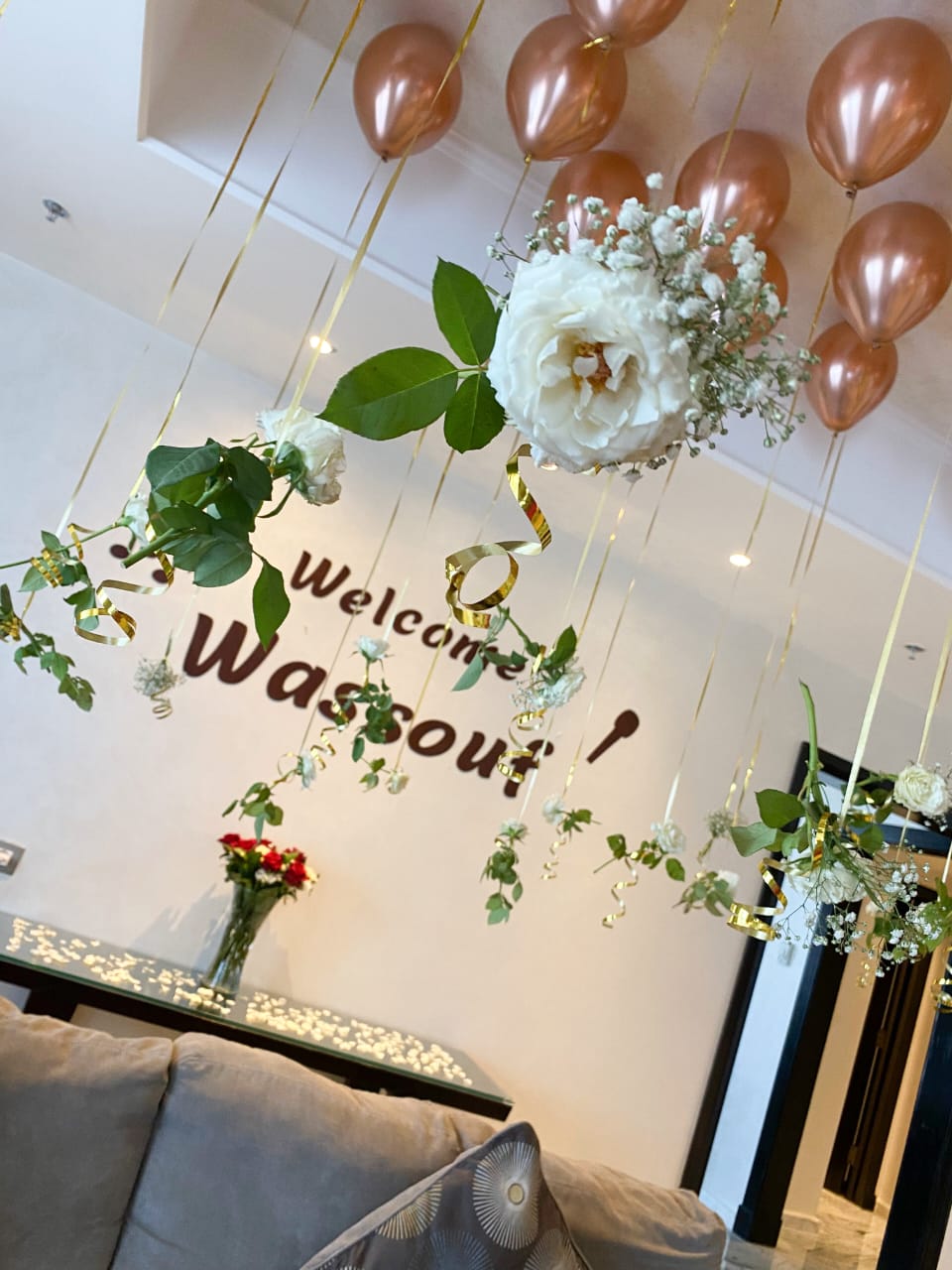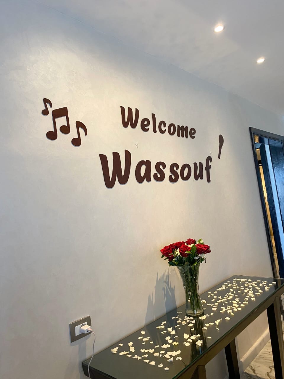 وتم عمل ديكورات ترحيب بجورج وسوف وكتابة " welcome wassouf " داخل غرفته بالفندق.