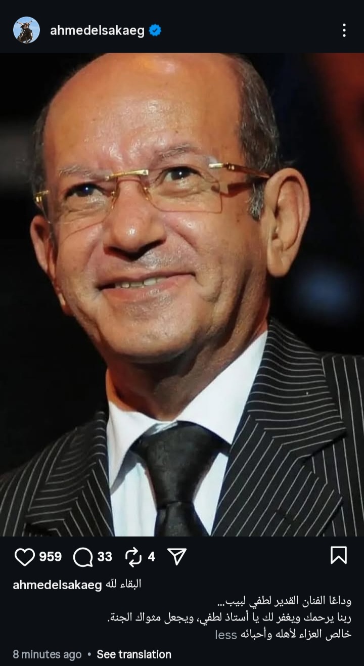 كما كتب النجم أحمد السقا عبر صفحته الرسمية "إنستجرام" " وداعا الفنان القدير لطفي لبيب، ربنا يرحمك ويغفرلك ، ويجعل مثواك الجنة،خالص العزاء لأهله وأحبائه".
