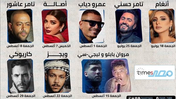 ويليها الفنان تامر عاشور في أمسية يوم 8 أغسطس، حيث يمتع الجمهور بأغانيه الرومانسية مثل “قولوله سماح” و”بياعة”، وسط مؤثرات بصرية وتقنيات صوتية متطورة.