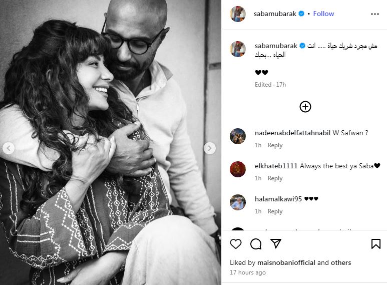ونشرت صبا الصور عبر صفحتها الرسمية "إنستجرام" وكتبت عليها " مش مجرد شريك حياة ….. انت الحياه …بحبك ، مما أثار فضول المتابعين .