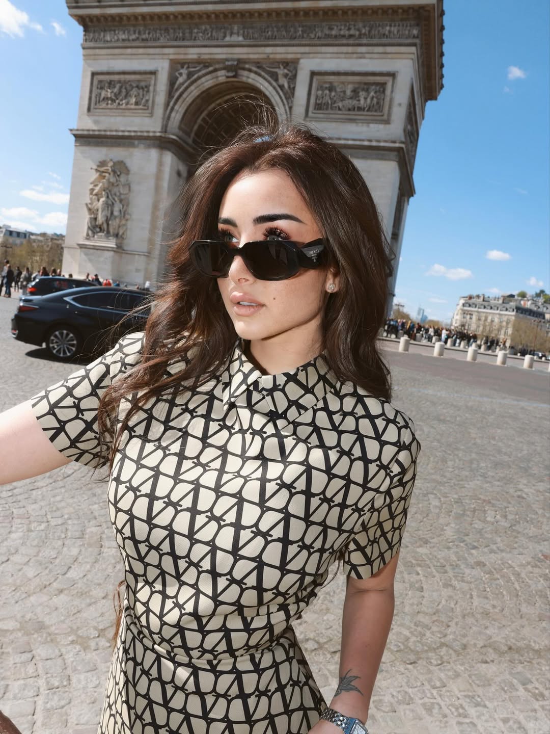 هنا الزاهد تتألق بإطلالة أنيقة وعصرية أمام قوس النصر في باريس (صور)