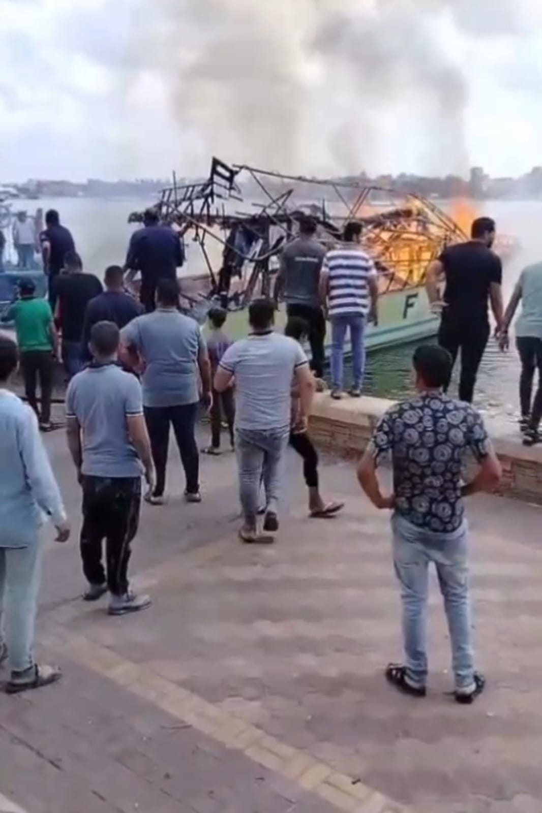 حريق هائل يلتهم مركب نزهة على كورنيش رشيد دون إصابات بشرية