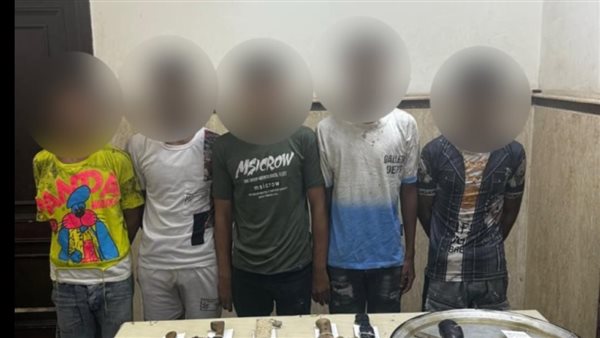وبالفحص، جرى تحديد وضبط المتهمين الظاهرين في الفيديو، وعددهم 5 أشخاص، لـ3 منهم معلومات جنائية مسجلة، وجميعهم مقيمون بدائرة قسم شرطة الدخيلة. وعُثر بحوزتهم على عدد من الأسلحة البيضاء و"صداده" حديدية.