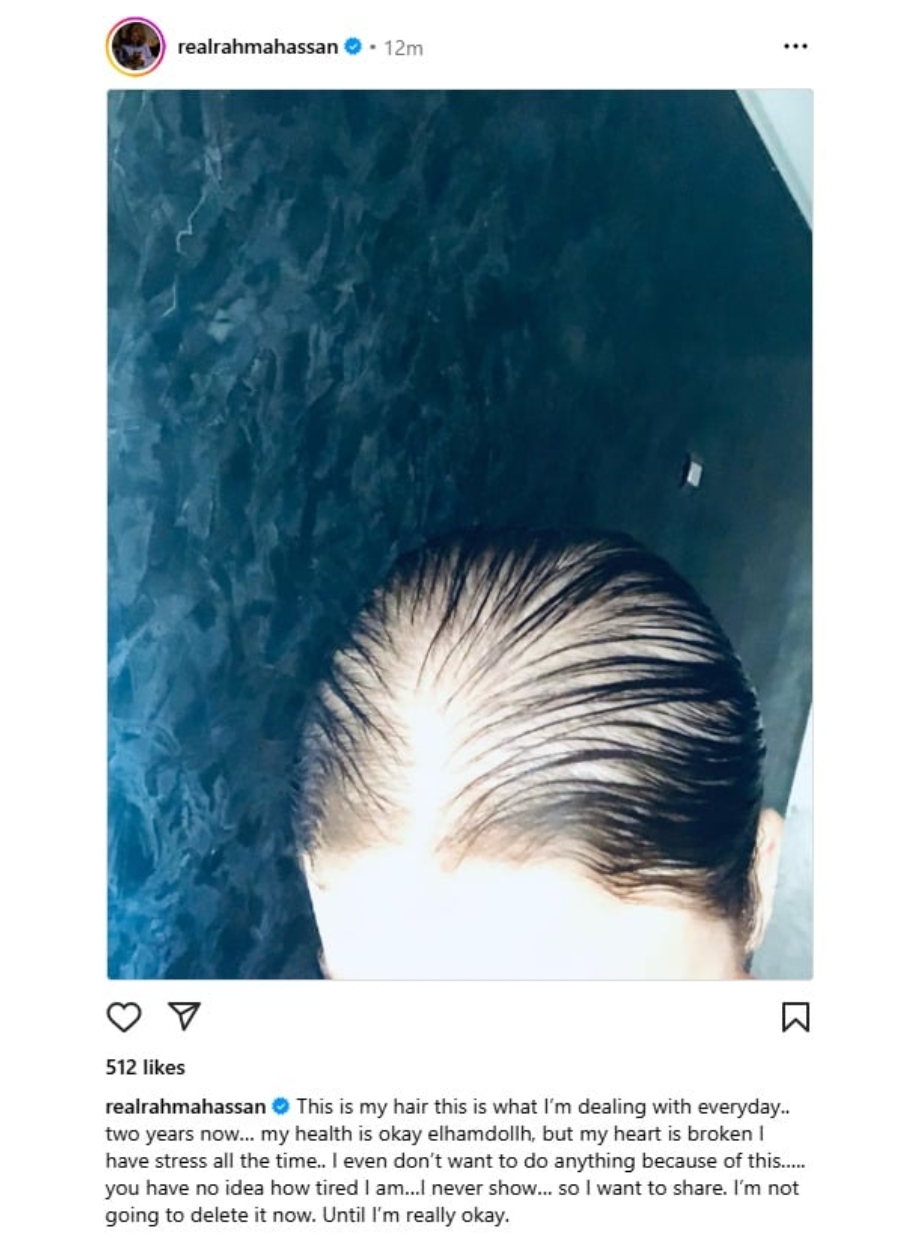 أثارت الفنانة رحمة حسن حالة من الجدل والحزن بين متابعيها، بعد أن شاركت صورة صادمة عبر حسابها الرسمي على تطبيق "إنستجرام"، كشفت فيها عن تساقط شعرها بشكل كبير من الجذور، مؤكدة أنها بدأت تعاني من الصلع نتيجة جلسات خضعت لها في إحدى العيادات التجميلية الشهيرة.