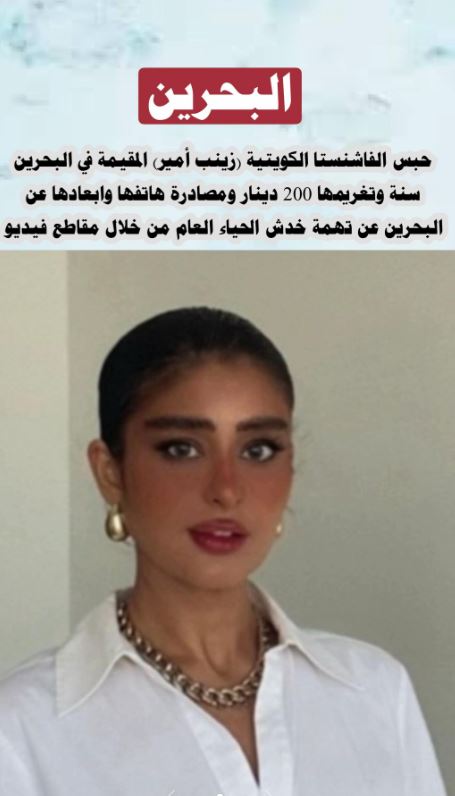 في ظل الحملات الراهنة في مكافحة المحتويات الغير لائقة على مواقع التواصل الإجتماعي أصدرت محكمة بحرينية حكماً قضائياً بسجن الفاشنستا الكويتية زينب أمير لمدة عام واحد، مع تغريمها بمبلغ 200 دينار بحريني، ومصادرة هاتفها المحمول، إضافة إلى قرار بترحيلها بعد انقضاء مدة العقوبة وجاء هذا الحكم بعد إدانتها بنشر محتوى وصف بأنه "خادش للحياء العام" عبر حساباتها على مواقع التواصل الاجتماعي وخلال السطور التالية سنتعرف على من هي زينب الأمير :