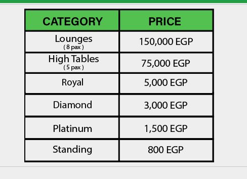 تذكرة بلاتينية: 1500 جنيه.