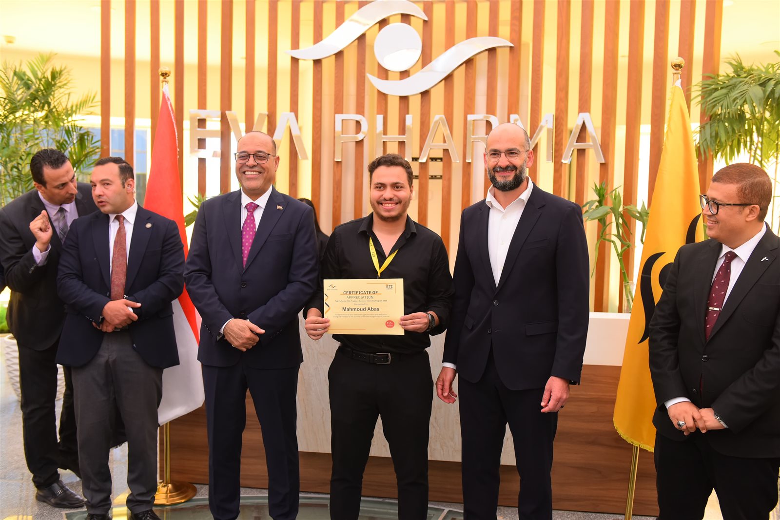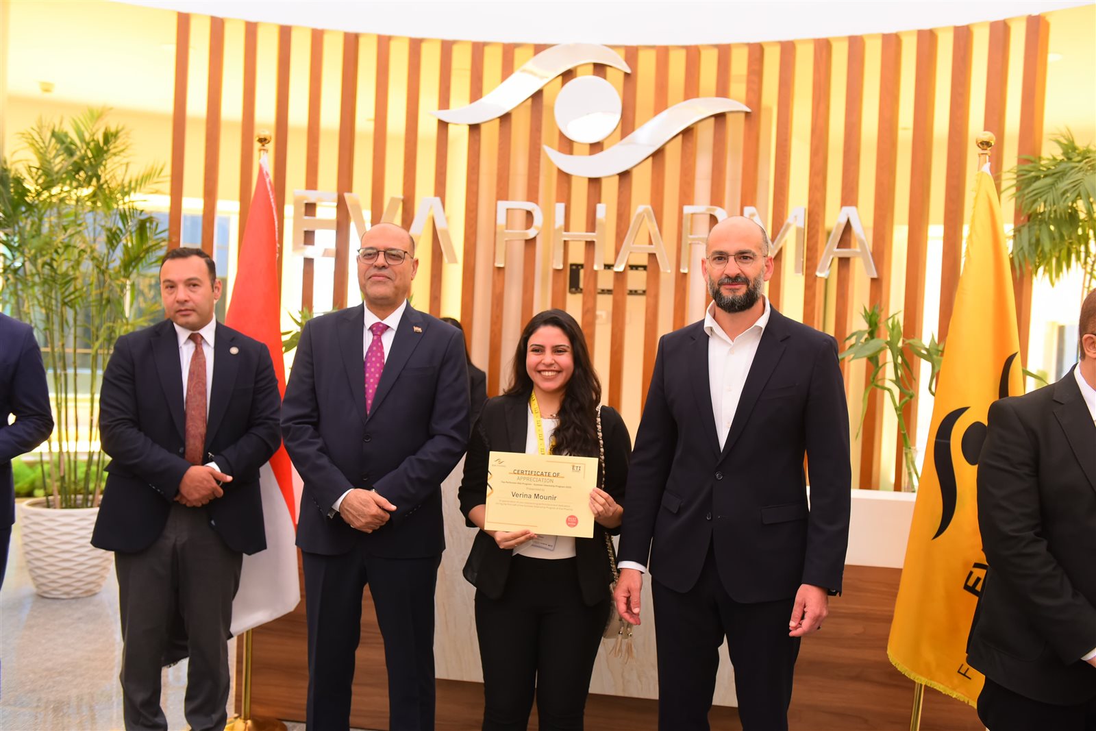 وتنفيذاً لتوجيهات فخامة الرئيس السيسي بتنمية مهارات الشباب ،قام الوزير جبران بتسليم 22 شهادة تخرج لمتدربين في "شركة إيفا"،على خط انتاج تحضير وصناعة أدوية ومراقبة جودة،كما قام بتكريم ذوي همم من العاملين بالشركة