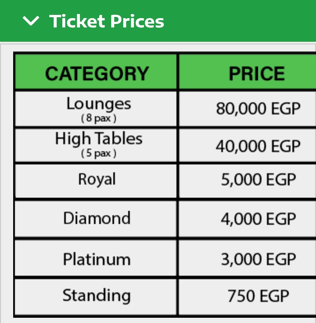 طرحت الجهة المنظمة تذاكر الحفل بعدة فئات تناسب مختلف شرائح الجمهور، وجاءت الأسعار كالتالي: