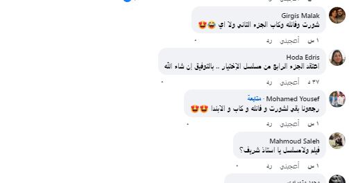 وقد أثارت الصورة تفاعلا واسعا بين متابعيه الفنان شريف منير متسائلين عن العمل الفني الذي سيجمعهم وجاءت التعليقات كالآتي : (اعتقد الجزء الرابع من مسلسل الإختيار ، فيلم ولا مسلسل يا استاذ شريف؟ ، رجعونا بقي لشورت و فانلة و كاب، هتعملوا العتاوله؟ )