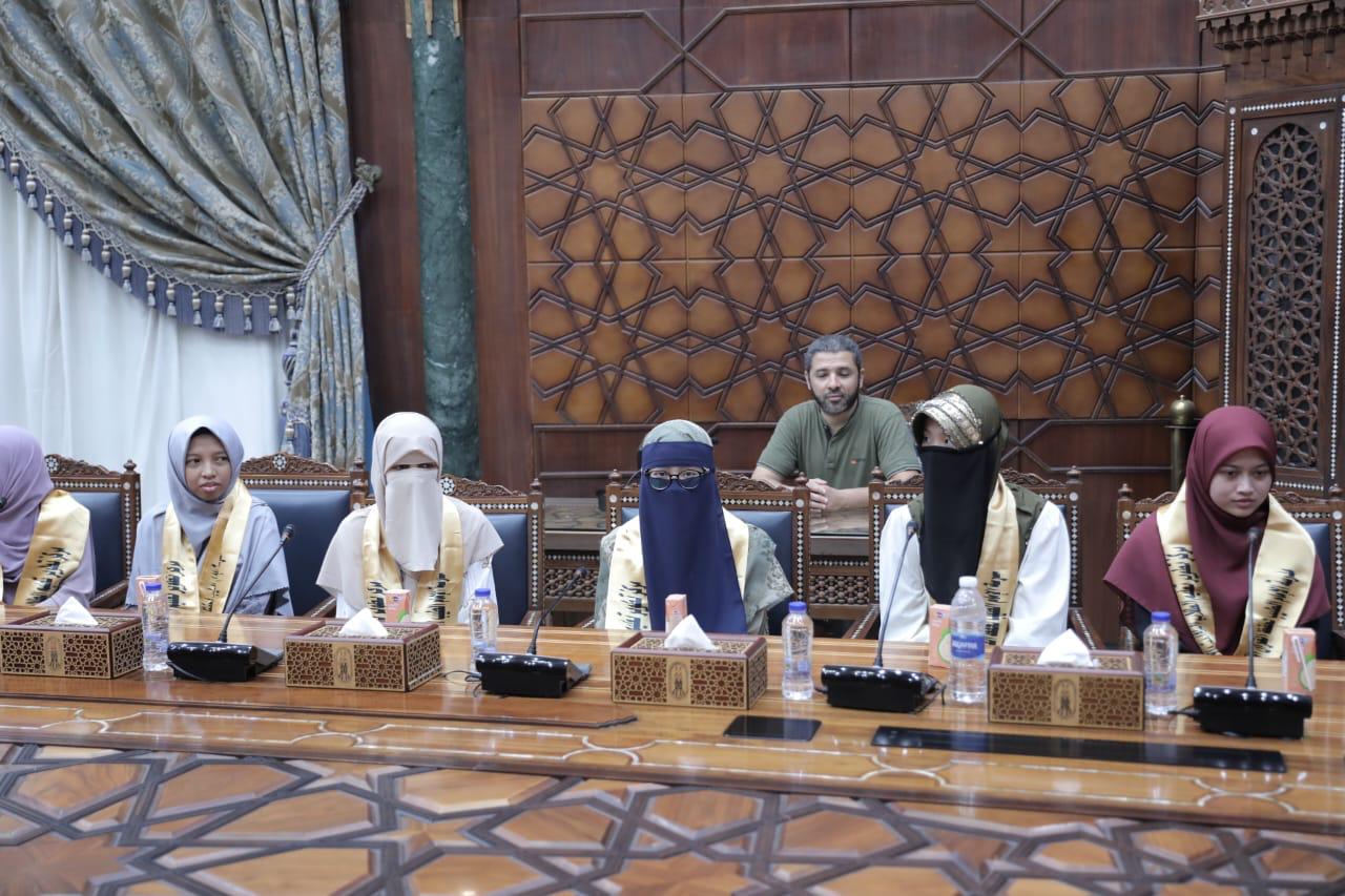 استقبل فضيلة الإمام الأكبر أ.د. أحمد الطيب، شيخ الأزهر، اليوم السبت بمشيخة الأزهر، مجموعة من الطلاب الوافدين الدارسين بمدرسة (الإمام الطيب لحفظ القرآن الكريم وتجويده)، بحضور الدكتورة نهلة الصعيدي، مستشار شيخ الأزهر لشؤون الوافدين، رئيس مركز تطوير تعليم الطلاب الوافدين والأجانب بالأزهر، وعددٍ من أعضاء هيئة التدريس بالمدرسة.