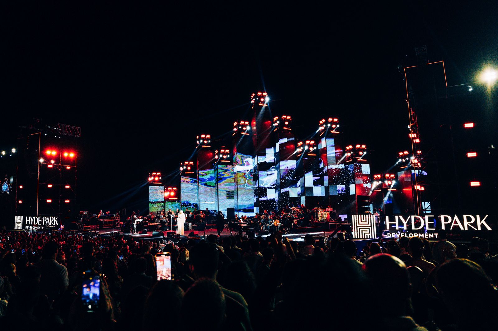 ثم شكر Hyde Park وروزناما (Roznama) على الدعوة والتنظيم المميز، قبل أن يفاجئ الجمهور بأول أداء حي لأغنيات من ألبومه الجديد HJ2025، الذي يطرحه بأغنيتين أسبوعيًا، منها “مستنيك” و”أنا والقمر” التي غناها الحضور بحماس رغم حداثة إصدارها.