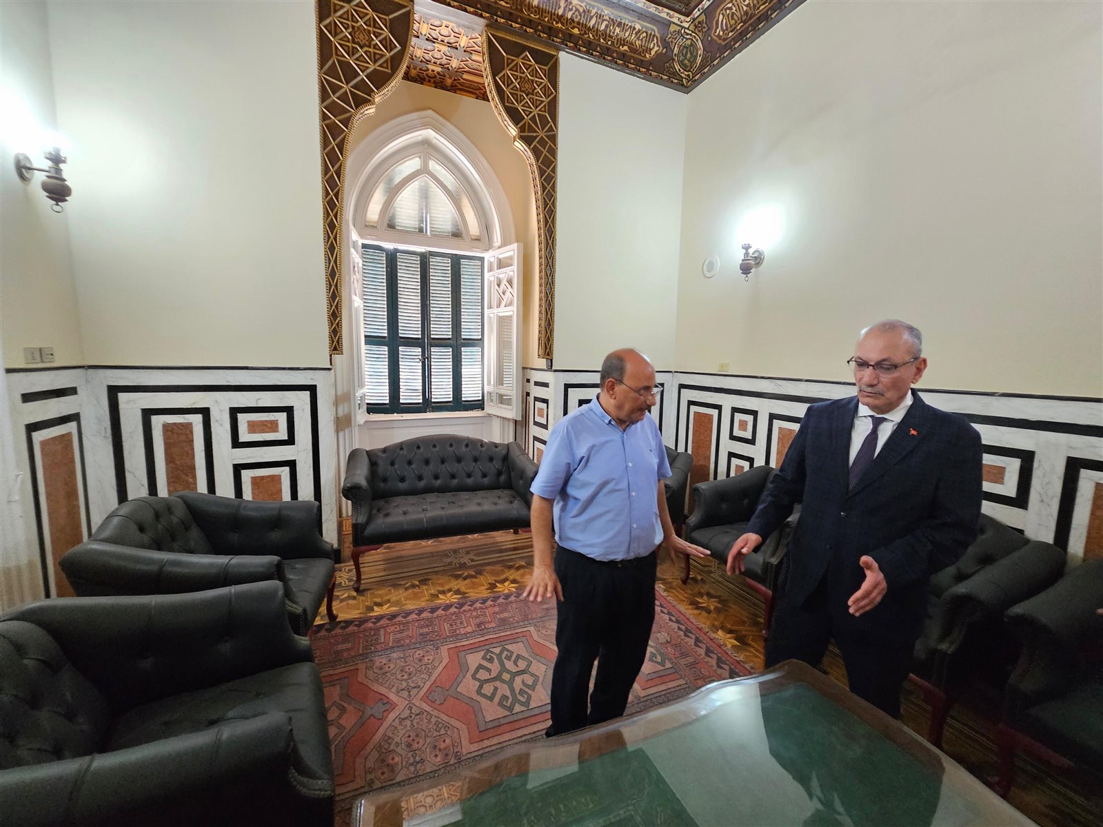 وأشار إلى أن القصر محفوظ بعناية فائقة، وهو معلم تاريخي تراثي، يحظى باهتمام كبير كمكتبة وقصر. وأشار إلى أن المكتبة تنظم فعاليات شهرية متنوعة، وأعرب عن أمله في دعوة السفير للمشاركة.