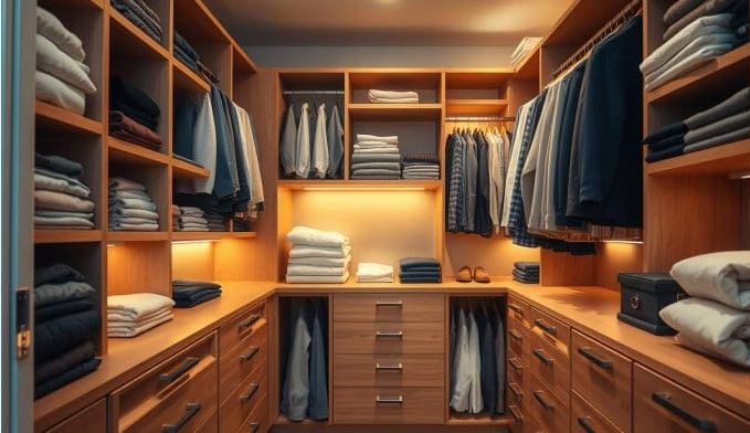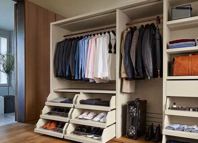 ضع الملابس الأقل استخدامًا في الأرفف العلوية أو الخلفية