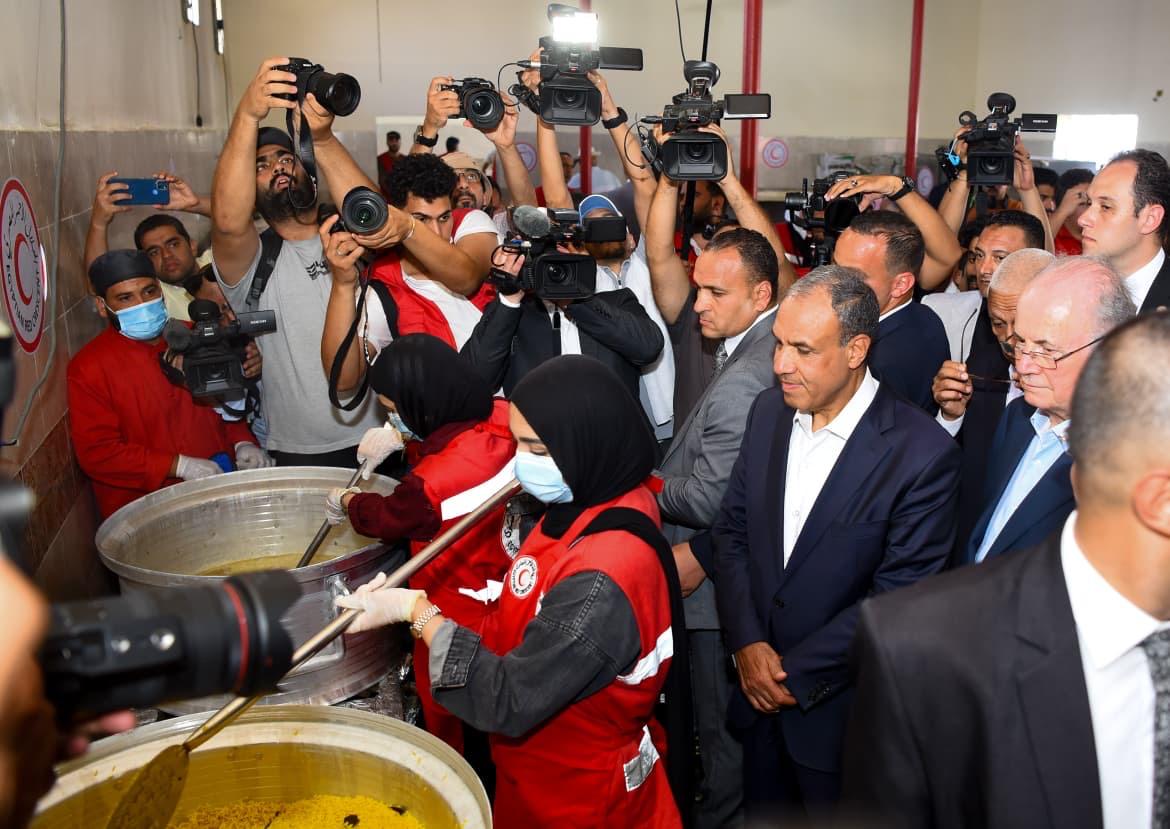 تفقد الدكتور بدر عبد العاطى وزير الخارجية و الدكتور محمد مصطفى، رئيس الوزراء الفلسطيني، مركز الإمداد الغذائي "المطبخ الإنساني" التابع لجمعية الهلال الأحمر المصري بالشيخ زويد، وذلك خلال زيارتهما لمدينة العريش ومعبر رفح يوم ١٨ أغسطس ٢٠٢٥، وبحضور د. مايا مرسي وزيرة التضامن الاجتماعي.