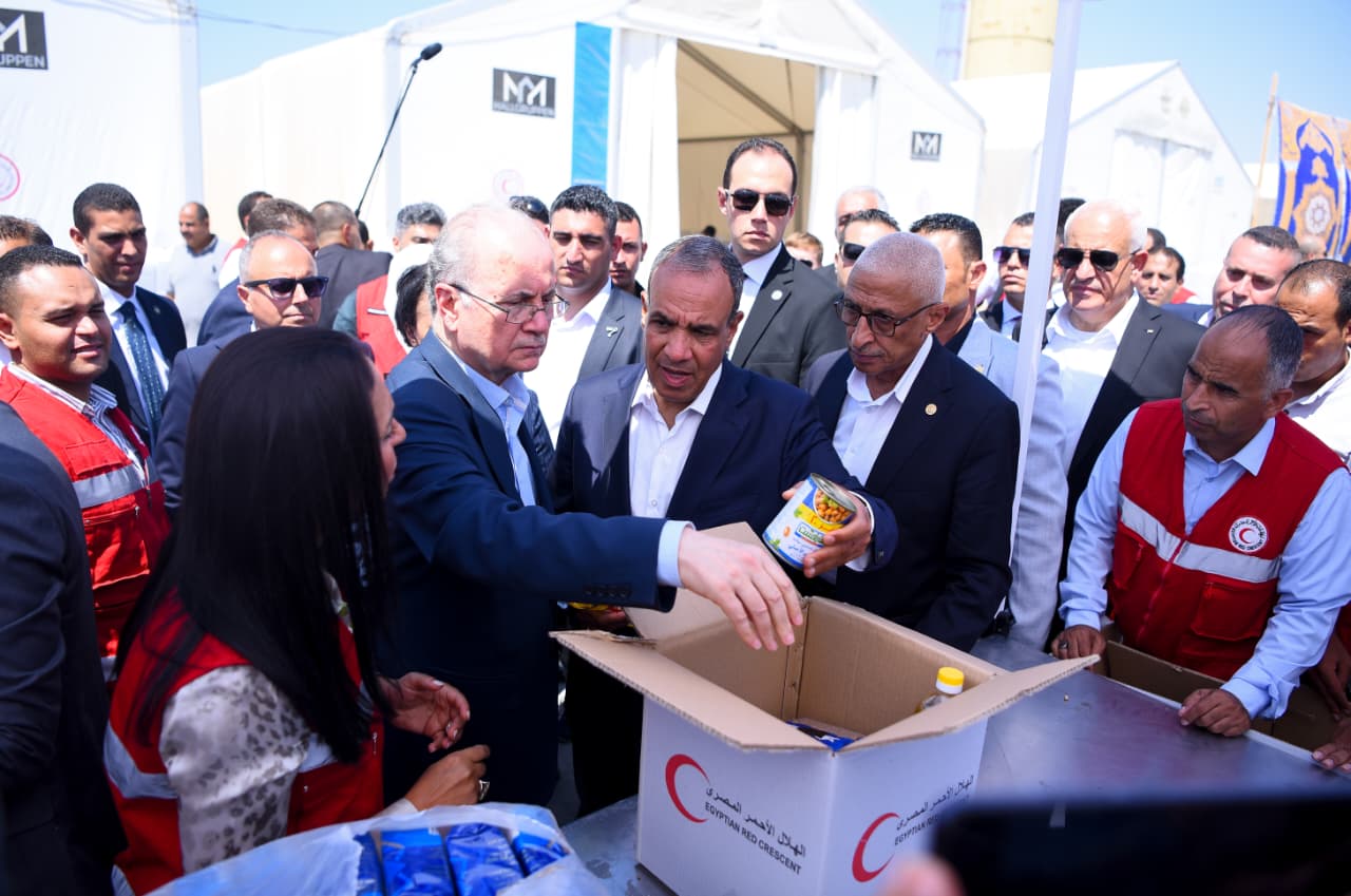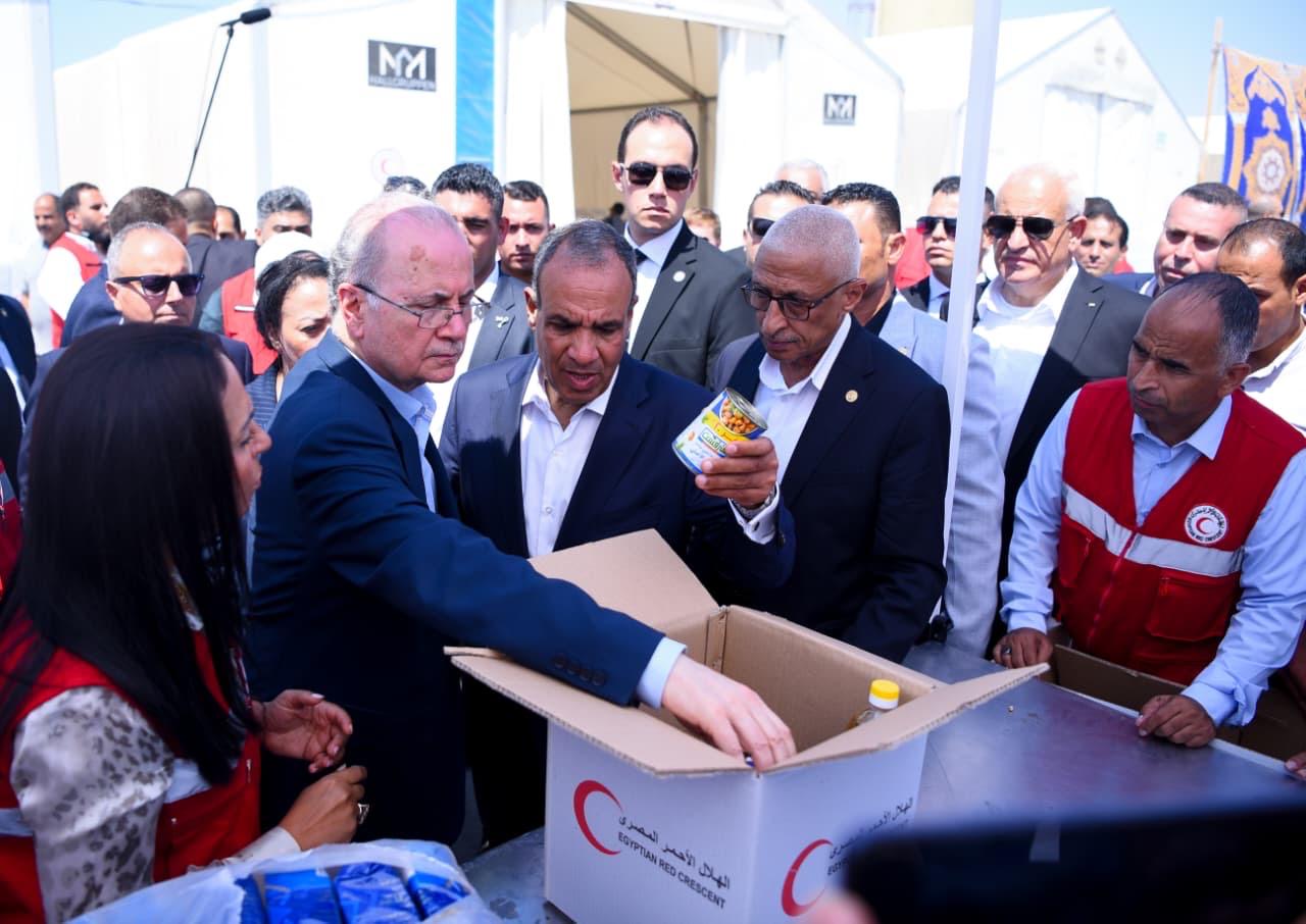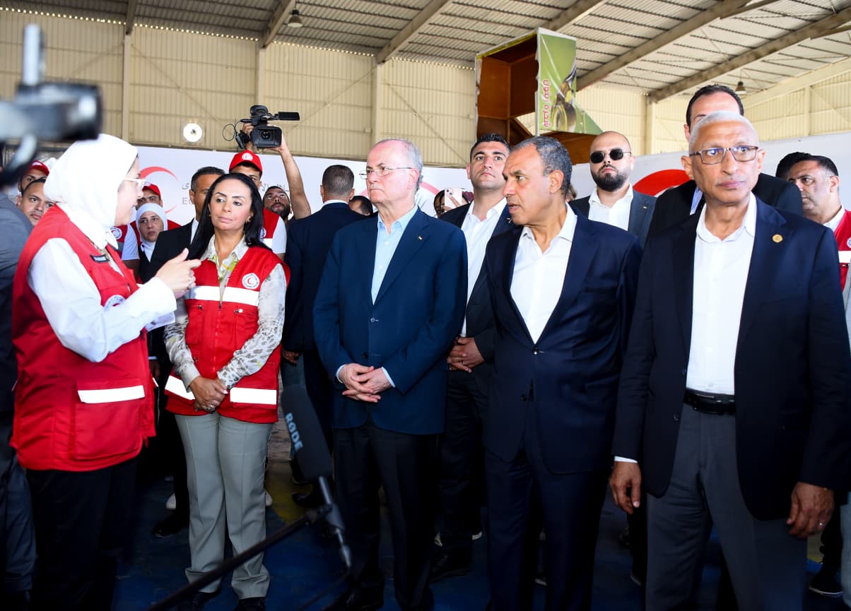وزير الخارجية ورئيس الوزراء الفلسطيني يزوران المركز اللوجيستي الرئيسي لجميعة الهلال الأحمر المصري