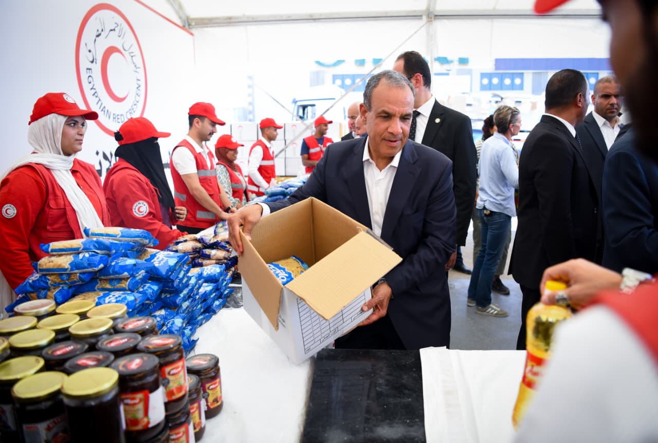 تفقد الدكتور بدر عبد العاطى وزير الخارجية والهجرة وشئون المصريين بالخارج و الدكتور محمد مصطفى، رئيس الوزراء الفلسطيني، المركز اللوجيستي الرئيسي لجميعة الهلال الأحمر المصري، وذلك خلال زيارتهما لمدينة العريش يوم ١٨ أغسطس، وذلك للإطلاع على آخر تطورات استجابة مصر الإنسانية لتداعيات الحرب على قطاع غزة، وذلك بمشاركة الدكتورة مايا مرسي وزيرة التضامن للاجتماعي.