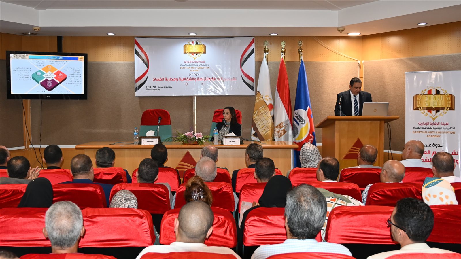 نظم مكتب هيئة الرقابة الإدارية بالبحيرة، برئاسة اللواء/ إيهاب سمير، ندوة تثقيفية بعنوان: "نشر قيم العدالة والنزاهة والشفافية ومحاربة الفساد"، وذلك بمكتبة مصر العامة بدمنهور، بحضور الدكتورة/ جاكلين عازر – محافظ البحيرة.