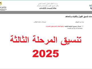 يرصد لكم موقع مصر تايمز، خلال السطورالتالية موعد بداية تنسيق المرحلة الثالثة 2025