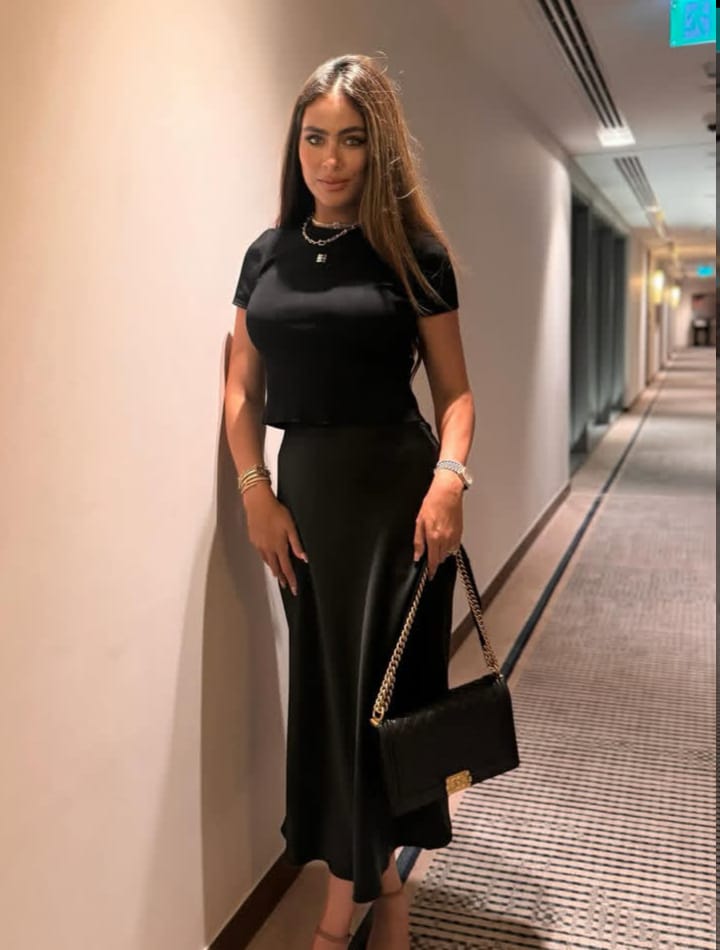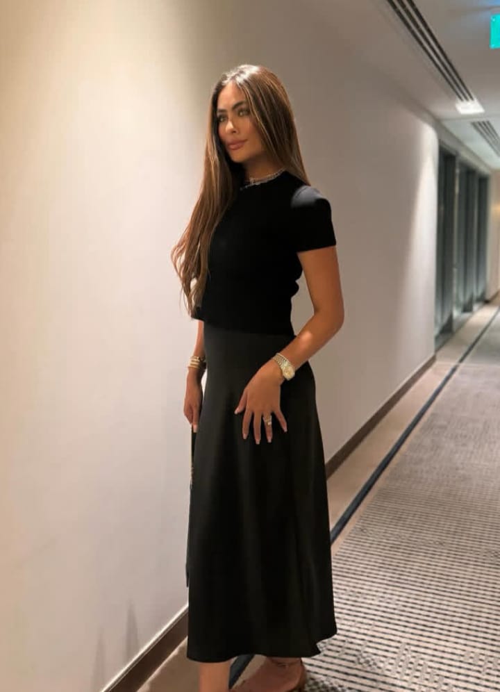 وظهرت هاجر بإطلالة مميزة (باللوك الأسود) تجمع بين الرقة والجمال والهدوء،حيث كانت ترتدي بلوزه وتنورة سوداء،هيلز وحقيبة سوداء تتميز بالفخامة مع لوك ميكب هادئ وشعر منسدًلا.