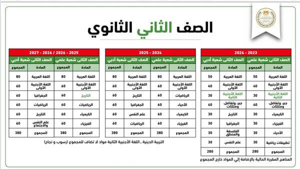 وفي هذا التقرير يستعرض لكم موقع مصر تايمز، خلال السطور التالية مواد الصف الثاني الثانوي علمي 2026