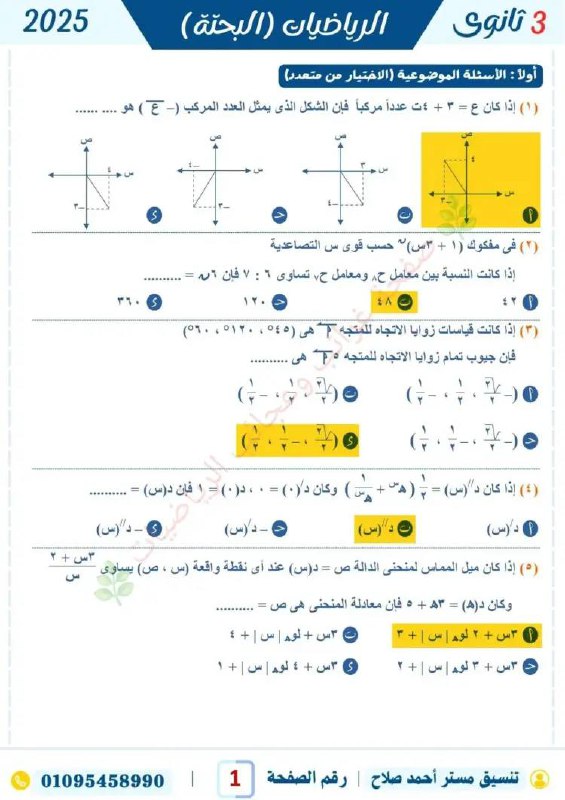 نموذج حل امتحان مادة الرياضيات البحتة للثانوية العامة دور ثاني 2025