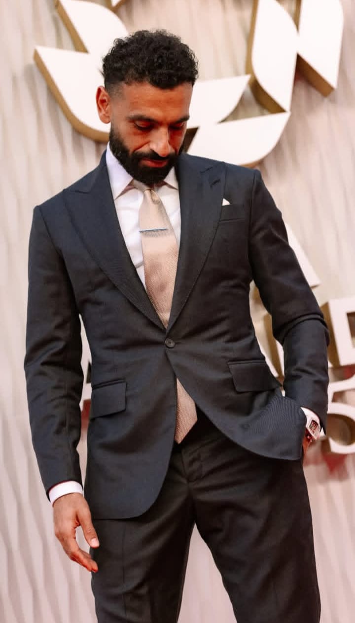 خطف النجم المصري العالمي محمد صلاح أنظار جميع محبيه ومتابعيه، بإطلالته الأنيقة والجذابة، حيث ارتدى بدلة سوداء تتميز بالفخامة من القماش وصولًا إلى الأزرار والحذاء الجلدي الأسود اللامع.