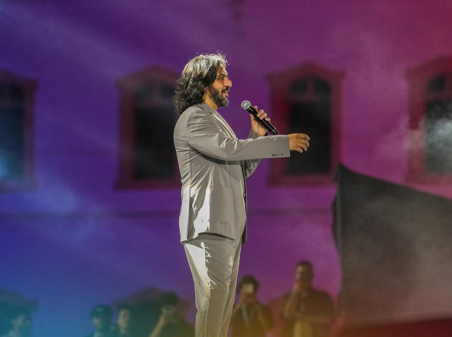وأثناء فقرته، حرص عاشور على الإشادة بالفنان بهاء سلطان، واصفاً إياه بـ"المطرب الكبير"، ثم قدّمه للجمهور الذي استقبله بحفاوة بالغة قبل صعوده إلى المسرح.